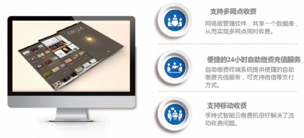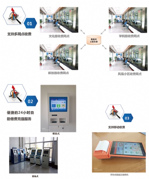 實(shí)現(xiàn)自助繳納水費(fèi)、電費(fèi);支付方式目前支持微信支付,可擴(kuò)展支付寶和銀聯(lián)卡支付;可實(shí)現(xiàn)票 據(jù)打印。產(chǎn)品分為壁掛式、落地式等;可實(shí)現(xiàn)24小時(shí)無人值守工作;